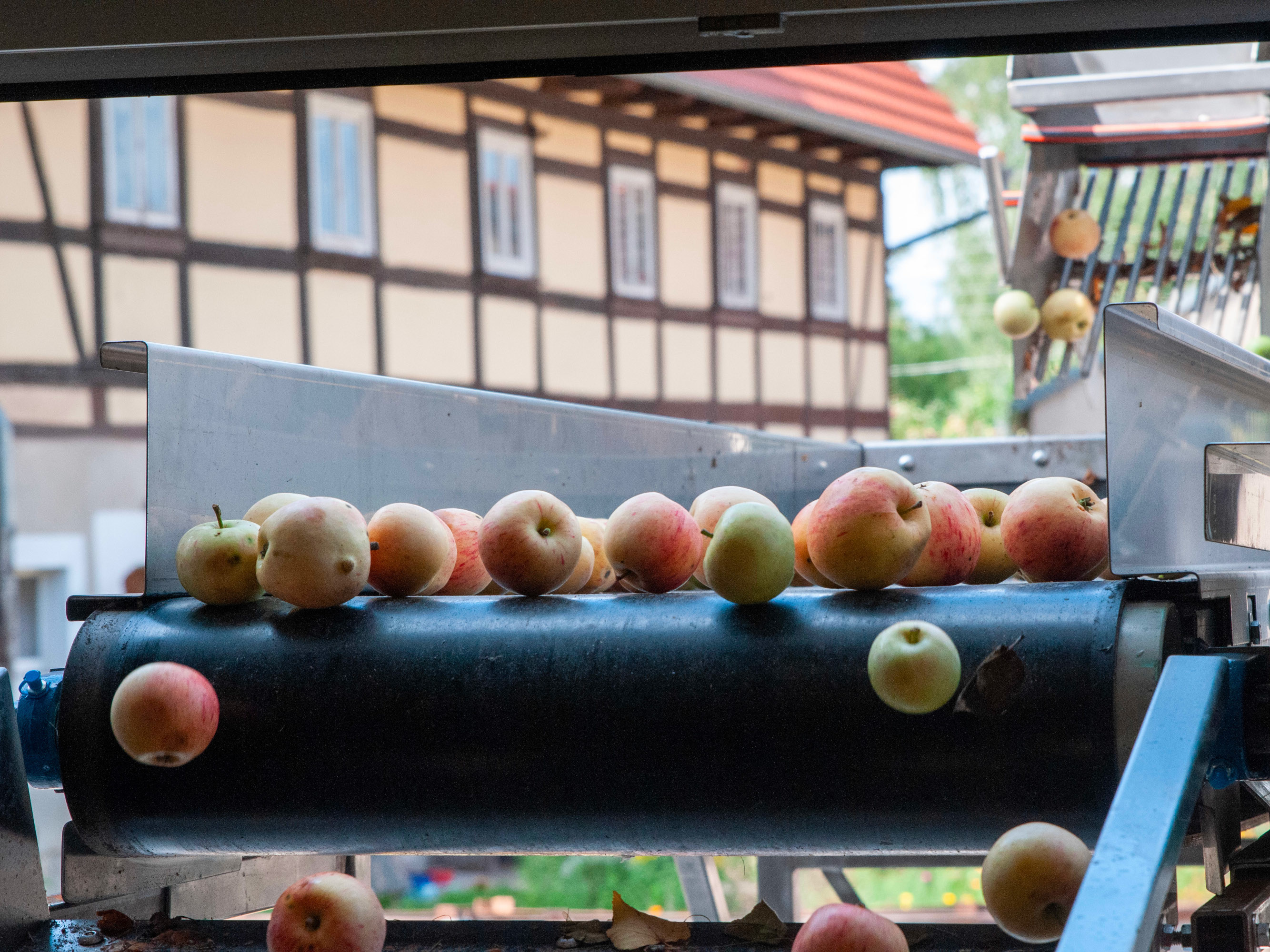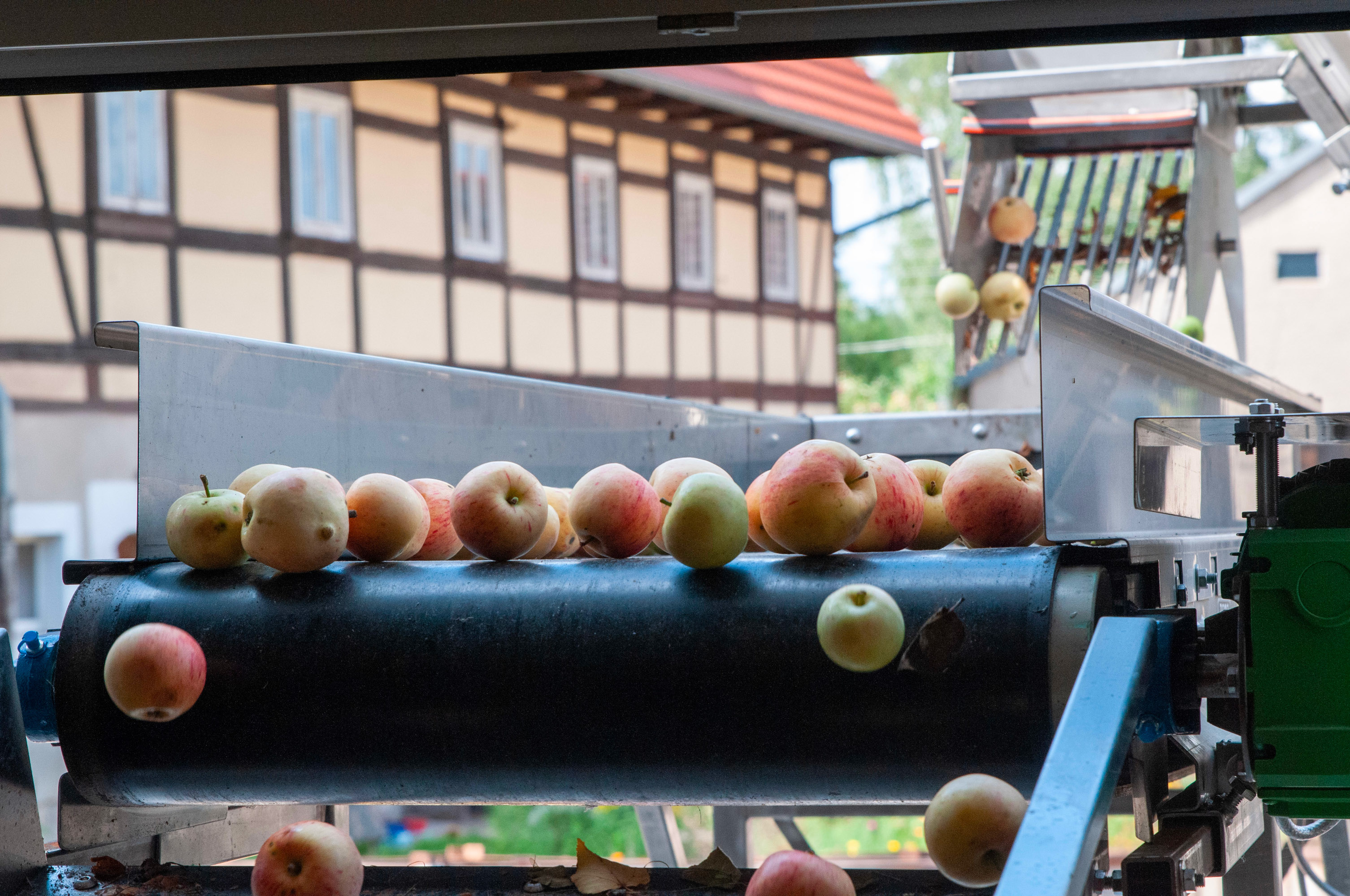 Unser Saft wird kurz nach der Ernte der Früchte durch Mahlen und Pressen hergestellt. Damit sich der Saft lange hält wird er anschließend pasteurisiert und in die Bag-in-Box-Verpackungen abgefüllt – oder seit 2019 auch in 1L-Glasflaschen. Da wir viele unterschiedliche Apfelsorten verarbeiten, schmeckt auch der Saft nicht einheitlich.